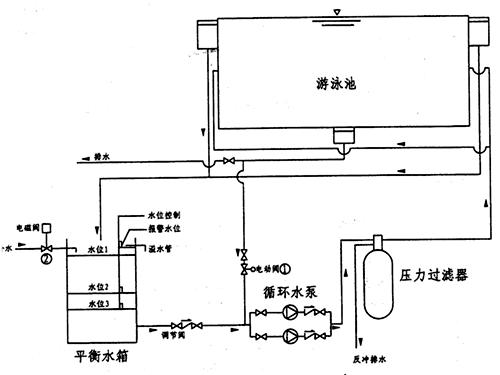 了解更多+如圖這是一種比較簡單而實用的平衡水箱,有人入池后貯存泳池溢出的水量,人出池后將箱內水送回泳池的調節作用,及過濾裝置利用泳池水反洗后的補水和其它補水作用。