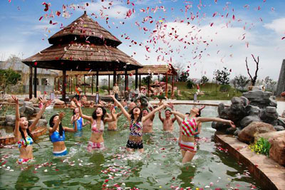 在悶熱的夏天里,一身汗?jié)n的你跳進(jìn)溫度適宜的溫泉里,躺在溫泉池中,閉上眼,感受那汩汩熱流不停歇地從身下冒出,全身心放松,享受溫泉善意的簇?fù)怼4藭r(shí),凡塵的喧囂遠(yuǎn)離了,都市的壓力洗脫了,人的心結(jié)也解開了,久違的愜意就浮上心頭了。這時(shí)候你就會(huì)發(fā)現(xiàn),溫泉不是只屬于冬天的專利,原來夏天也同樣適合,而且溫泉真像有人說的那樣——是“心的故鄉(xiāng)”,可以放飛心情,愉悅身心。