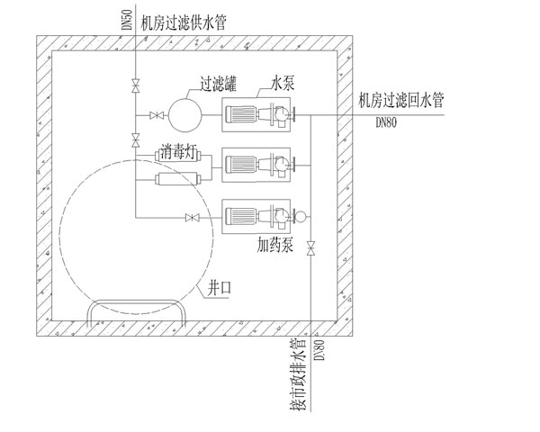 圖2泳池循環(huán)及補(bǔ)水系統(tǒng)