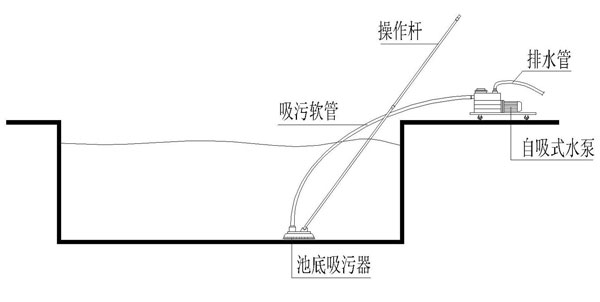 ⑤吸污采用吸污小推車,用池底吸污器吸污,操作簡便,勞動強(qiáng)度較低;