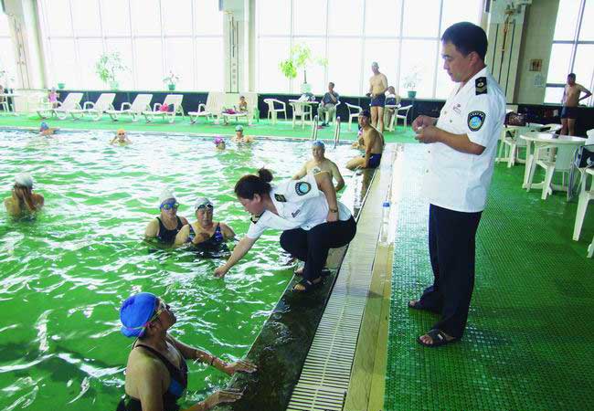 水質(zhì)衛(wèi)生的現(xiàn)場(chǎng)常規(guī)檢測(cè)由游泳池場(chǎng)館自身檢測(cè),開(kāi)放時(shí)間應(yīng)每隔2小時(shí)檢測(cè)一次,各游泳場(chǎng)館應(yīng)配備專門的水質(zhì)管理員。