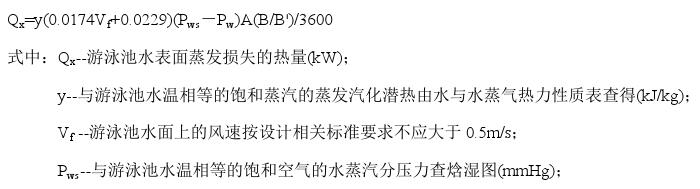 (1)游泳池水表面蒸發(fā)損失的熱量,按下式計算: