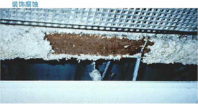 室內(nèi)游泳池由于池水表面蒸發(fā)容易使室內(nèi)充滿潮濕含氯的空氣,當(dāng)潮濕含氯的空氣遇到較冷物體就會(huì)凝結(jié)出冷凝水,由于冷凝水含有大量的氯,將會(huì)腐蝕所接觸到的建筑物,如使裝修面層生銹、起鼓、掉漆等,嚴(yán)重的時(shí)候回因腐蝕到受力鋼筋,使之抗拉強(qiáng)度降低而斷裂,造成房屋垮塌等危險(xiǎn)。這情況在發(fā)達(dá)國(guó)家增發(fā)生過多次。