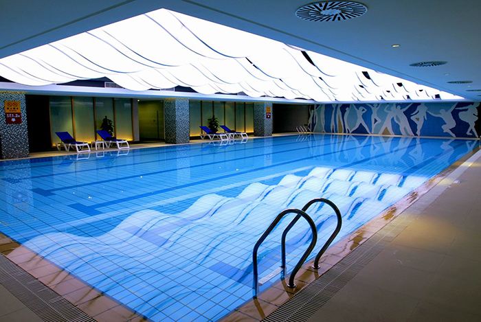 每天在泳池開放前檢測水的PH值,如PH低于6.8則使用PH調節劑(氫氧化鈉)將PH調到6.8-7.2,投加量按1000立方投加10KG可以提高1度進行計算。