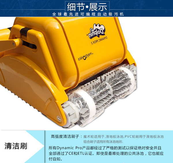 3002型海豚吸污機帶遙控,可以控制吸污機走向,在岸邊用遙控器指示機器進入難以到達的角落進行清洗,做到徹底清潔泳池,無死角吸污。